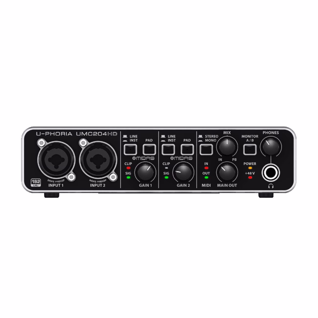 Conocido por su dominio de diseño de la consola digital, nuestra compañía hermana MIDAS desarrollado los previos de clase mundial para las interfaces-y UMC204, UMC202 y UMC22 gracias a la potencia disponible fantasma de +48 V, incluso se puede utilizar de nivel profesional para micrófonos de condensador de estudio crear pistas de circulación.
