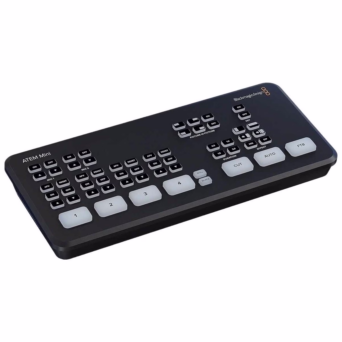 Los modelos ATEM Mini son los más sencillos de usar. Basta con presionar cualquiera de los botones numerados en el panel frontal para alternar entre las fuentes. A su vez, es posible elegir distintos tipos de cortes y efectos mediante los botones CUT o AUTO. A diferencia del primero, este último permite cambiar de un plano a otro según la transición seleccionada, por ejemplo, una disolvencia, un fundido a un color determinado u otros efectos de mayor dramatismo. Por otra parte, es posible escoger distintas posiciones para las imágenes superpuestas. Cabe destacar que estos mezcladores facilitan el almacenamiento de títulos y gráficos, a los cuales se puede acceder mediante un programa informático de control externo.