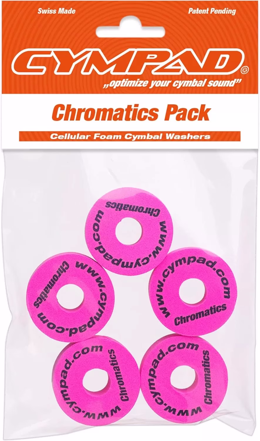Los separadores para platillos Cympad Chromatic están hechos de espuma celular de alta densidad y son una alternativa moderna a los fieltros tradicionales. Estos separadores vienen en una amplia gama de colores, permitiendo a los bateristas personalizar el aspecto de sus sets de batería y platillos para contrastar o complementar con su estilo.