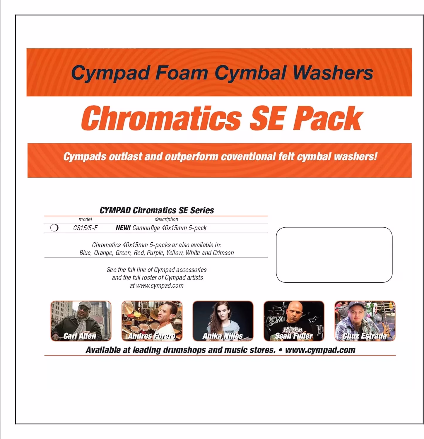 Los separadores para platillos Cympad Chromatic están hechos de espuma celular de alta densidad y son una alternativa moderna a los fieltros tradicionales. Estos separadores vienen en una amplia gama de colores, permitiendo a los bateristas personalizar el aspecto de sus sets de batería y platillos para contrastar o complementar con su estilo.