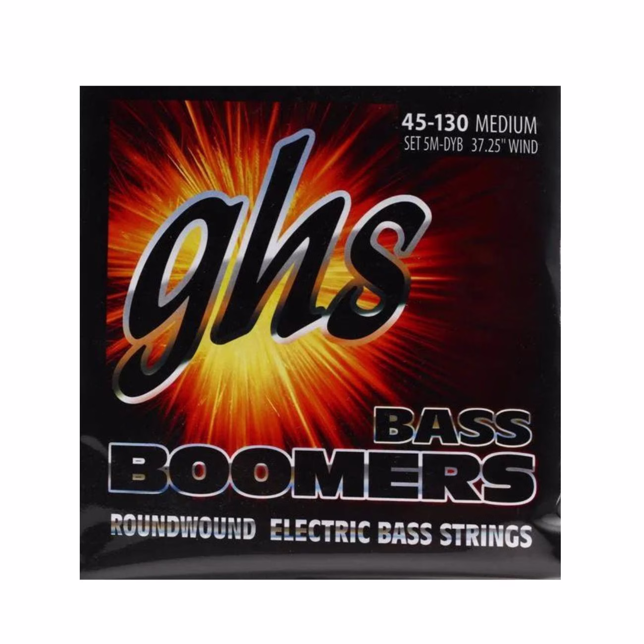 GHS Strings 5M-DYB – Boomers de 5 cuerdas para bajo bajo eléctrico niquelado, largo escala, mediano (.045-.130)