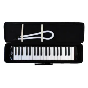El acabado en color negro brillante aporta una estética moderna y elegante, adecuada para clases, ensayos y presentaciones escolares. Su tamaño de 39 pulgadas corresponde a un formato completo tipo 4/4, adecuado para jóvenes y adultos.