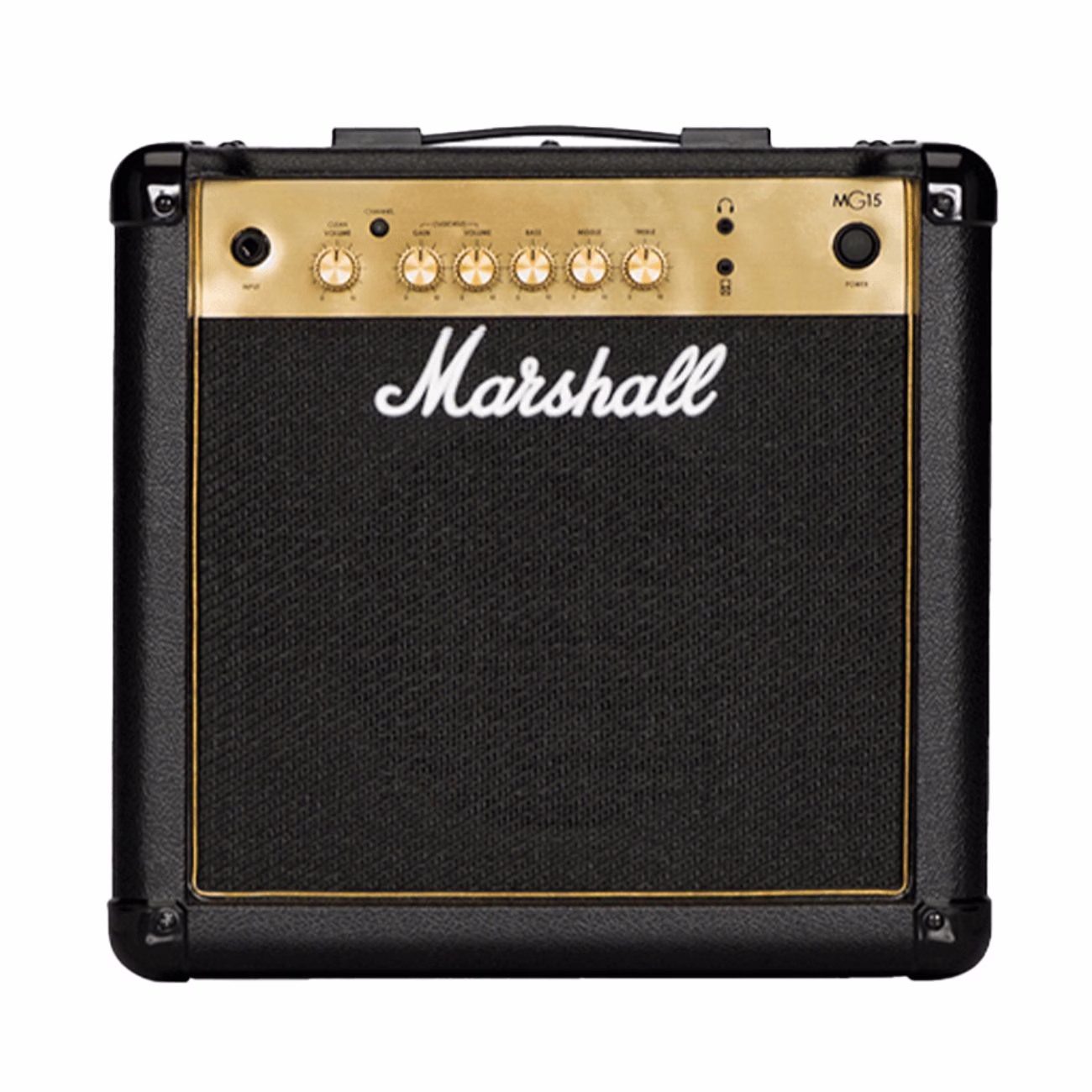 El amplificador Marshall MG15G ofrece tonos versátiles en un diseño compacto de 15 vatios, ideal para prácticas y ensayos.