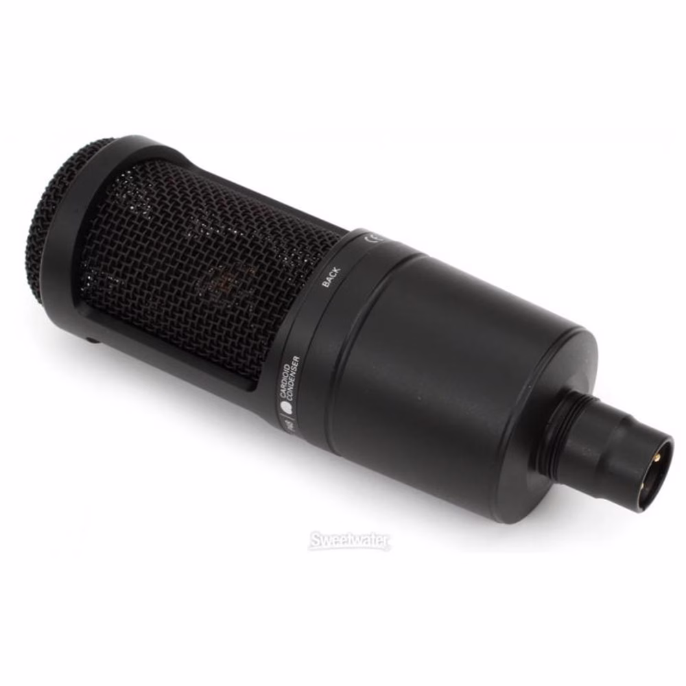 El Audio-Technica AT2020 es un micrófono condensador cardioide de alta calidad, ideal para voces, instrumentos acústicos y grabaciones de estudio. Su diseño robusto y su rendimiento profesional lo convierten en uno de los micrófonos más confiables y populares del mercado.