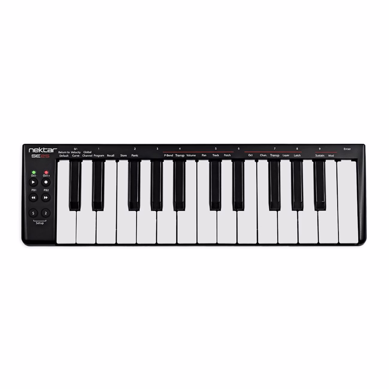 El controlador MIDI Nektar SE25 te brinda 25 teclas sensibles a la velocidad, pads de percusión y controles asignables en un diseño compacto y portátil.