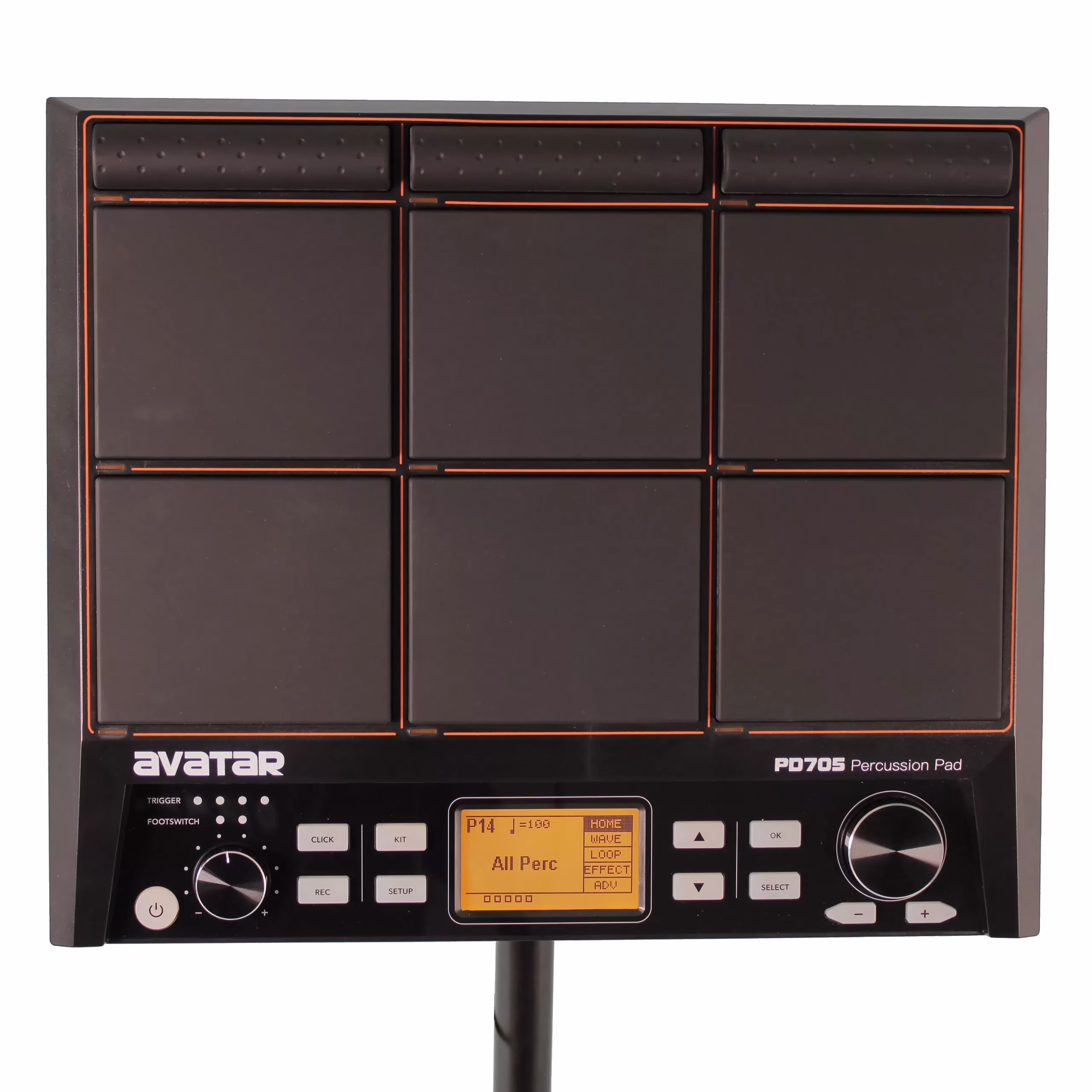 El Pad de Percusión Electrónica Avatar PD705 1G es una herramienta avanzada diseñada para músicos que buscan versatilidad y calidad en un solo dispositivo. Este pad de percusión cuenta con 9 pads sensibles que activan los LEDs ubicados en el panel frontal al ser presionados. Cada pad ofrece parámetros de ajuste individuales como Tuning, Muffling y Pan, permitiendo una personalización detallada del sonido.