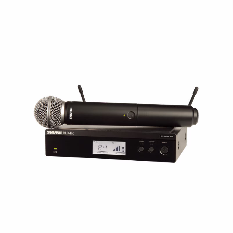 El Sistema Inalámbrico de Mano BLX24R/SM58 forma parte de la destacada línea de sistemas inalámbricos BLX® de Shure.