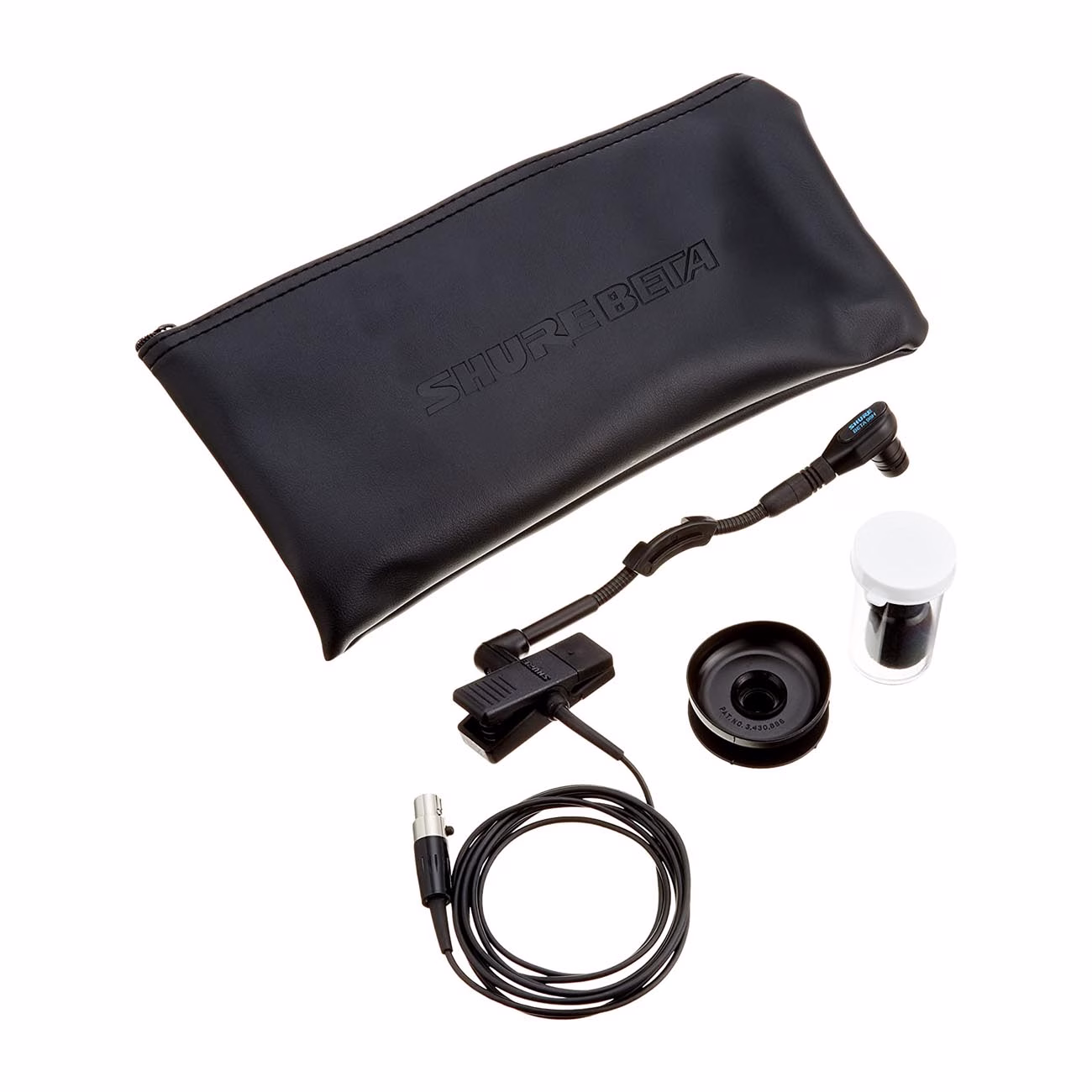 El Micrófono para Instrumento Shure WB98H/C, la versión inalámbrica del BETA 98H/C, es un micrófono de instrumento condensador cardioide y de gama alta que se fija en la campana del instrumento de viento o en los aros del instrumento de percusión.