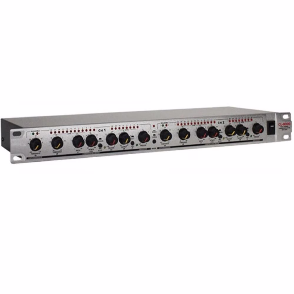 CL-8000 es un compresor/limitador/compuerta de dos canales que tiene un circuito auto limitador y una función auto expandible por compuerta para eliminar ruido durante secciones silenciosas. La unidad provee un botón de modo estéreo/mono, selección de nivel de entrada (+4/ -10dBu), así como entradas y salidas balanceadas. Otras especificaciones del CL-8000 son: Ancho de banda: 20Hz to 20kHz, +0/-0.5dB Ruido: > -95dBu, no ponderado, 22Hz to 22kHz. THD: 0.04% typically @ +4dBu, 1kHz, Gain 1.