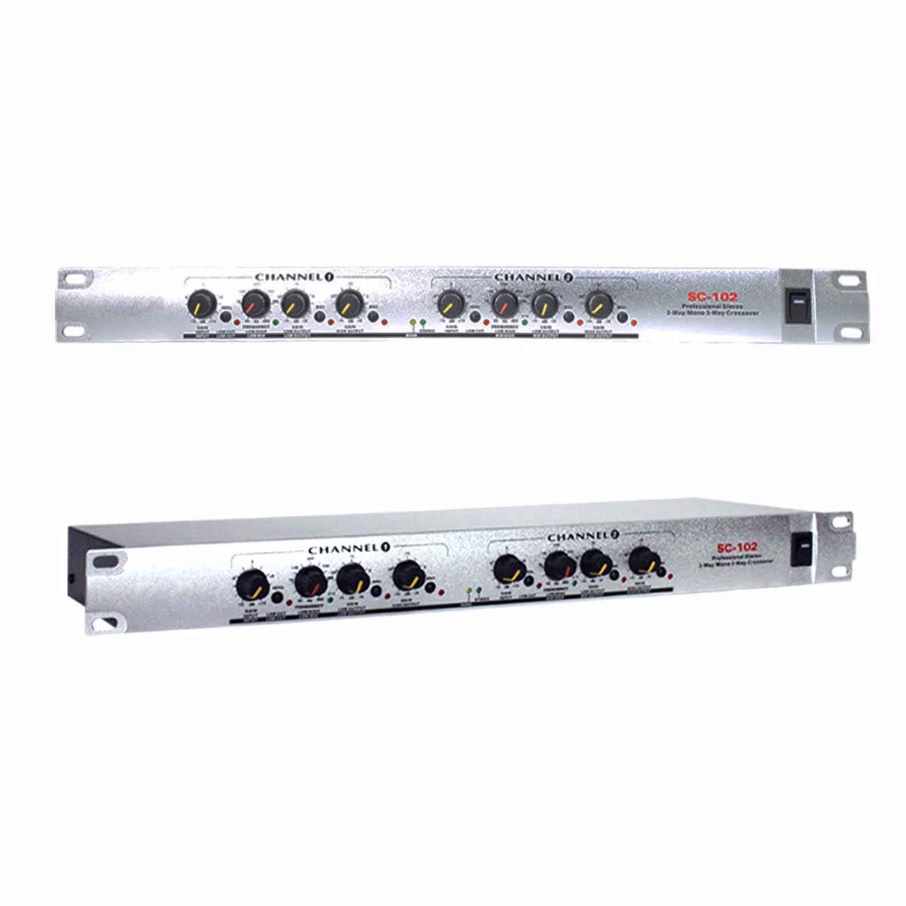 SC-102 es un crossover de 2 vías estéreo/ 3 vías mono con un rango de crossover estéreo de: Bajas/Medias:50Hz-5KHz;Medias/Altas:750Hz-7.5KHz y un rango de crossover mono de: Bajas/Bajas-Medias:50Hz-5KHz;Bajas-Medias/Medias-Altas:750-7.5KHz; Medias-Altas/Altas: 2KHz-20KHz. La unidad provee un filtro de 18dB/octava tipo slope y conexiones de ¼’’ balanceadas o desbalanceadas. El SC-102 también tiene un botón de fase y un filtro high-pass que puede eliminar efectivamente la distorsión de bajas frecuencias.